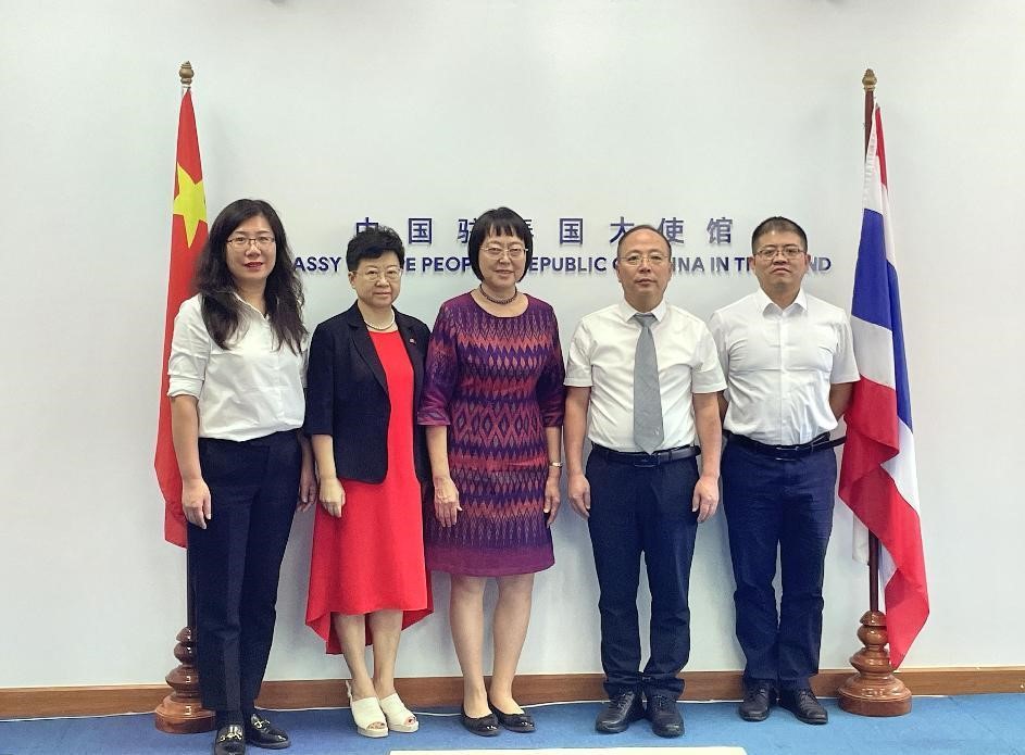 12月27日上午,杨学印一行拜访了中国驻泰国大使馆教育处教育参赞冯俊英和一等秘书王欢。双方就中泰教育合作发展的现状及泰国中文教育开展情况进行座谈交流。冯俊英参赞热情欢迎代表团一行的到来,并表示愿意为beat365官网与泰国高校之间的合作交流提供支持与帮助,希望beat365官网可以加强与泰国高校专业合作,吸引更多泰国学生到中国留学。