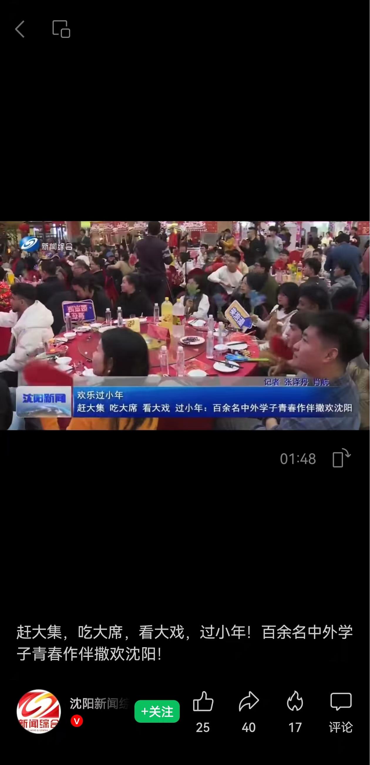 1月22日,beat365官网留学生受邀参加沈阳市文旅产业集团、沈阳电视台和团市委组织的“在沈留学生一起过大年”活动,品鉴辽宁十四个地区特色菜品,活动报道登上《沈阳新闻》,并在直播生活、沈阳新闻综合频道、沈阳广电云盛京等官方视频号上发布。
