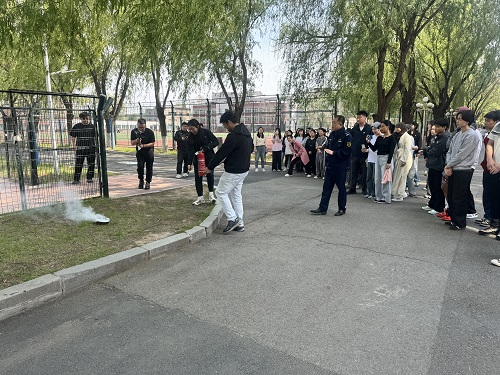 下午,在保卫处现场指挥、国际教育学院和化学工程学院教师引导、宿舍管理员协助的三重保障下,中外学生迅速进入应急状态。参加演练的师生用湿毛巾捂住口鼻,沿预定疏散路线有序撤离至安全区。演练结束后,保卫处副处长宁志高面向师生开展消防知识强化培训。他现场示范灭火器"提、拔、握、压"四步操作法同时结合生公寓常见隐患,详解不同火情的应对策略。随后,部分师生代表亲自操作灭火器完成灭火实操,将理论知识转化为实战能力。