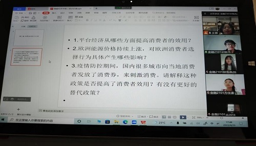 鉴于新冠疫情防控要求,本学期开学以来,beat365官网教师不得不暂停线下教学,在家通过线上远程方式给学生们上课,这增加了课程思政教学难度。为了使“以学生为中心”、让思政教学在专业课堂教学中入脑入心这一教育目标不因线上教学而打折扣,经济与管理学院王蓉老师,经过不断试错完善,探索出一条《微观经济学》课程思政教学的云端新模式,即利用网络信息技术,将理论讲授、文献阅读、社会调查、项目研究、小组讨论、案例剖析等教学环节进行云端一体化整合,引导学生充分利用网络平台信息获取的便捷性优势,充分利用微观经济学学习微信群,百度网盘、腾讯会议线上教室,大学慕课平台,问卷星网络调查统计系统、知网、国研网等网络信息平台,开展《微观经济学》线上课程思政教与学,取得了积极进展。
