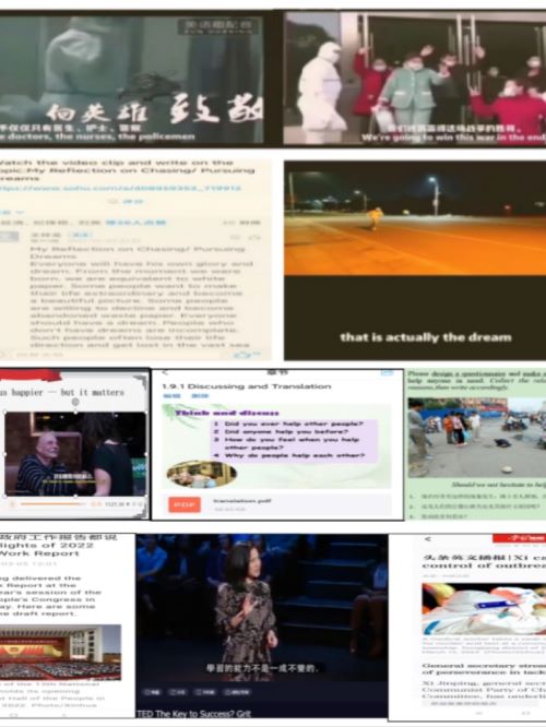 思于心、践于行,坚守初心担使命,基于课程思政引领,将立德树人落到实处。教师整合思辨素材,多角度地引导学生乐思、善思、敢思;结合China Daily、“学习强国”英文播报、TED Talks讲坛等图文、视音频语料资源,使学生了解国内外时政新闻热点,树立国际视野;收集具有中国特色的词语的比较地道的表达方式,提升其用英文“讲好中国故事,传播中国声音”的能力。
