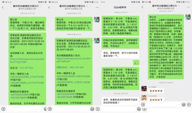 苏勇老师为机械与动力工程学院力学教研室主任,工作中始终以一名优秀教师的标准严格要求自己,用行动诠释着教育的内涵。本学期苏勇老师为能源与动力工程专业(中外合作办学)讲授《理论力学》课程。针对部分学生学习基础较弱以及课程难度较大的问题,苏勇老师坚持“以学生为中心,以解决实际问题为导向”进行教学模式改革和实践。采用“课程积分制度”、“弹性形成性评价及其公示制度”、设立“课堂之星奖”和“勤思奖”等方法,激发了全体学生(特别是学习困难学生)学习的积极性;采用“学生录制题库作业讲解视频”(可获得课程积分)的方式,利用课下时间对学生进行精确指导。在2021年秋季学期,共指导学生录制完成55个作业题目讲解视频。学生的每一稿讲解视频,苏勇老师都会认真聆听,并在第一时间通过微信或者腾讯会议对问题或错误进行反馈和纠正,平均每个题目视频成稿前在苏勇老师的指导下学生需要反复录制约3次,这确保了学生对课程知识点理解的准确性。此外,除定期面对面答疑外,苏勇老师在本学期共通过腾讯会议答疑约30次,超过60%是在夜间20点后进行,约30%是在夜间22点后进行。