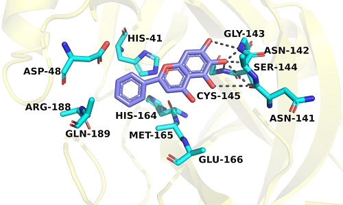 黄芩素与SARS-CoV Mpro相互作用示意图