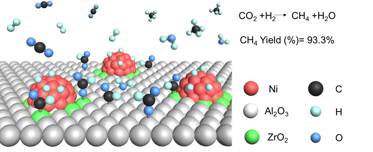 图1. Ni-Zr-Al催化剂结构与反应机理示意图