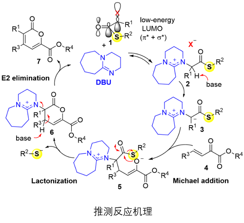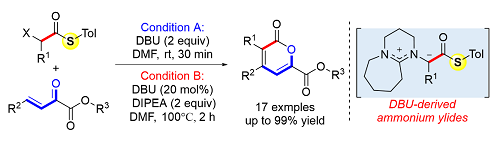 该成果为3,4,6-三取代2-吡喃酮的制备提供了一条有效途径,也为DBU衍生氮叶立德在有机合成中的应用提供了启示和理论指导。