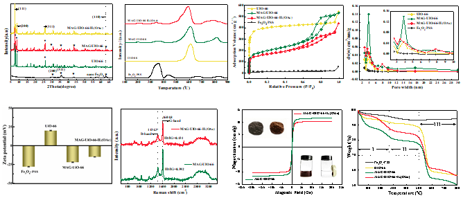 图3. 磁性MOF限域催化剂部分表征数据示意图