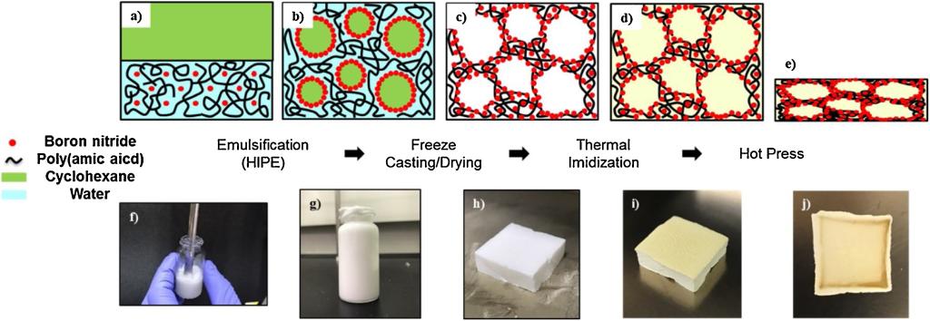 图3 基于HIPPE和热压法制备多孔BN/PI复合膜的工艺。