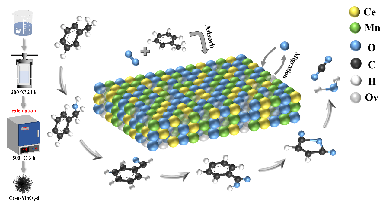 二氧化锰因其晶相可调节、天然丰度高、成本低和稳定性强等特点,被视为氧化分解VOCs的理想催化剂。然而,单金属MnO2对甲苯的催化降解性能有限。环境与安全工程学院张学军教授课题组对高性能二氧化锰基催化剂的制备与其催化氧化甲苯的性能进行了研究和分析,发现通过调控煅烧温度可诱导δ-MnO2向α-MnO2发生相变,实现催化剂由层状结构向隧道结构的转变。结构重构产生的晶格应力和畸变共同诱导了缺陷的形成和金属-氧键的弱化,增大了Ce-α-MnO2-δ催化剂的比表面积,提高了其氧化-还原循环速率,从而改善了甲苯催化氧化性能。2025年6月20日,相关研究成果以Promoting the Reactivity of Surface Lattice Oxygen in Ce Modified α‐MnO2 via a Structure Reconstruction Strategy for Toluene Oxidation为题发表在Small上。第一作者为理学院刘威副教授,第二作者为环境与安全工程学院硕士研究生俞红玉,共同通讯作者为环境与安全工程学院张学军教授和陈希副教授。beat365在线体育官网登录入口为论文的第一单位。