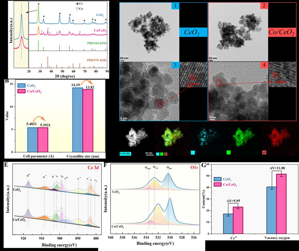 加成型液体硅橡胶(ALSR)广泛应用于航空航天、新能源汽车等关键领域,但其易燃特性制约了其在高温、富氧等苛刻环境下的安全使用。现有阻燃技术往往难以兼顾材料的良好加工性能与长期稳定阻燃需求。近日,beat365官网材料科学与工程学院、辽宁省橡胶重点实验室方庆红教授团队,通过学科交叉与协同创新,成功构建了富含高浓度氧空位的Co/CeO2复合纳米填料(下图),首次将其作为高效阻燃体系应用于ALSR材料中。研究表明,仅添加1.0 phr的Co/CeO2,即可显著提升ALSR的耐热性能及阻燃效能。实验表明,该复合材料在氮气与空气气氛下经800 ℃高温热解后,残炭率分别提升18.7%和24.3%。同时,材料火灾危险性显著降低:峰值热释放速率、总热释放量、烟雾生成速率、总烟雾生成量以及一氧化碳与二氧化碳生成量分别下降32.95%、35.56%、56.05%、49.66%、78.13%和30.09%。极限氧指数提升至31.5%,并成功通过UL-94 V-0级阻燃认证。该研究发展了一种高效、低添加量的新型阻燃策略,为面向极端环境下高安全性聚合物材料的设计与开发提供了重要支撑。