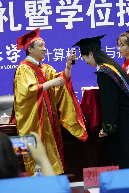 仲夏时节,青春放歌。6月23日上午,计算机科学与技术学院在碧帆楼报告厅隆重举行2021年毕业典礼暨学位授予仪式。校长许光文,党委学生工作部部长李川,党委研究生工作部部长衣福艳,教务处处长于三三,招生与就业工作处处长王成家,计算机科学与技术学院院长王军,副院长张波、李莉,党总支副书记张丹以及各教研室主任、党支部书记、全体辅导员以及2021届本硕毕业生参加了本次典礼,共同见证了这一难忘时刻。典礼由计算机科学与技术学院党总支书记王立刚主持。