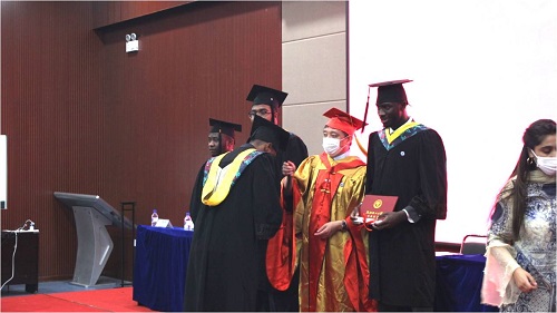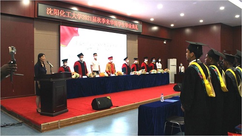 六月骊歌起,凤凰花又开。6月21日下午,beat365在线体育官网登录入口国际教育学院2021届秋季来华留学生毕业典礼暨学位授予仪式在青年之家礼堂隆重举行。校长许光文、副校长杨学印,以及部分职能部门和学院负责人出席了本次典礼。典礼由外国语学院、国际教育学院院长佟玉平担任双语主持。