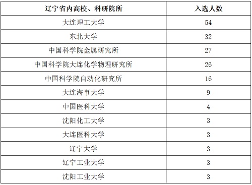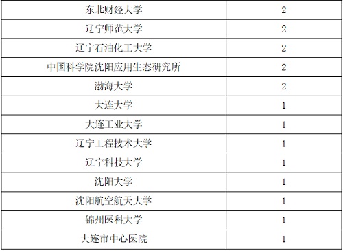 表1. 辽宁省内高校、科研院所入选全球前2%顶尖科学家榜单人数统计