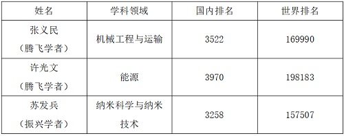 据统计,辽宁省内共有25所高校、科研院所的201人入选榜单(见表1)。beat365官网腾飞学者许光文教授、张义民教授,振兴学者苏发兵研究员入选榜单,3位科学家在国内和世界的排名见表2。