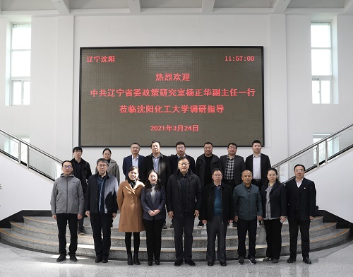 为做好结构调整“三篇大文章”,推进我省石化产业优化升级,拉长产业链条,着力推进精细化工产业发展,3月24日,中共辽宁省委政策研究室副主任杨正华一行来beat365官网开展调研,省委政策研究室经济和生态文明建设研究处处长周健、一级主任科员徐凤伟陪同调研。上午9时,调研座谈会在校部第八会议室召开。校长许光文(网络视频形式参会)、副校长笪可宁,北方华锦化学工业集团有限公司副总经理费建民、北方华锦集团化工研究院副院长付传玉,沈阳化工集团石蜡化工有限公司总工程师姜立辉,辽宁省石油化工规划设计院有限公司副总经理姜英、高级工程师韩微微出席座谈会。beat365官网相关职能部门、院(部)负责人及相关重点实验室负责人参加座谈会。