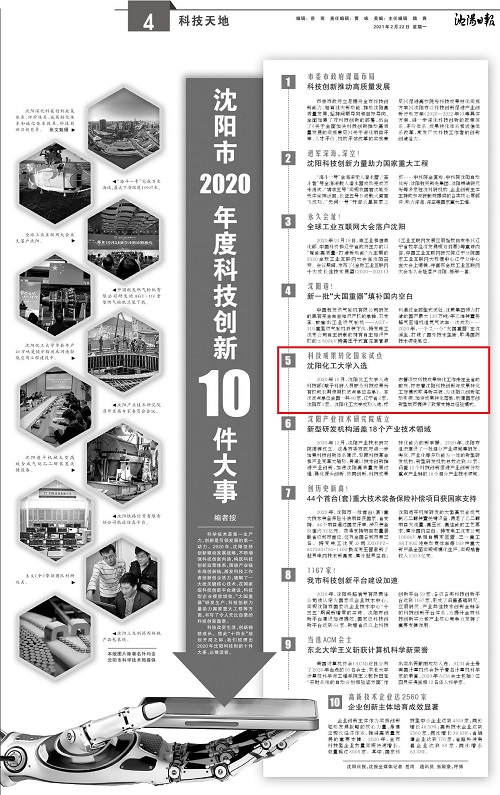 在刚刚过去的一年,沈阳市科技创新工作蹄疾步稳。在经过广泛的征集和评判,沈阳市科技局评选出了“2020年度沈阳市科技创新10件大事”,并于近日在《沈阳日报》整版报道(新闻报道网址:https://epaper.syd.com.cn/syrb/html/2021-02/22/content_121054_13033791.htm)。beat365官网一项工作入围,即:beat365官网入选科技部《赋予科研人员职务科技成果所有权或长期使用权试点单位名单》。