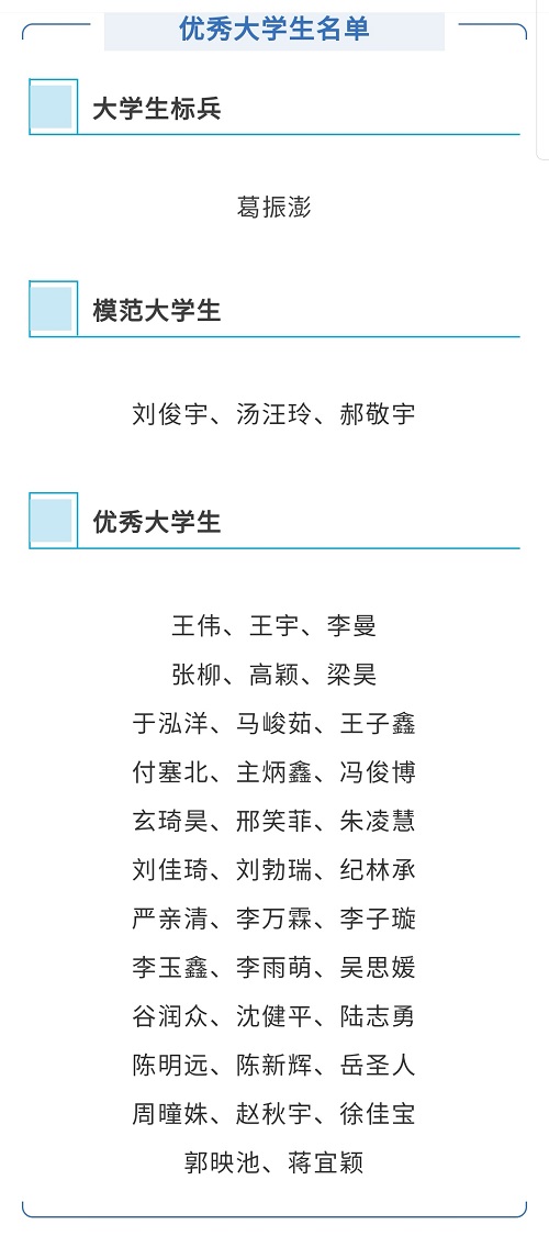 近日,《关于评定2020年沈阳市大学生标兵模范大学生和优秀大学生的通报》中,beat365官网葛振澎同学被评为“沈阳市大学生标兵”,汤汪玲等3人被评为“沈阳市模范大学生”,于泓洋等35人被评为“沈阳市优秀大学生”。
