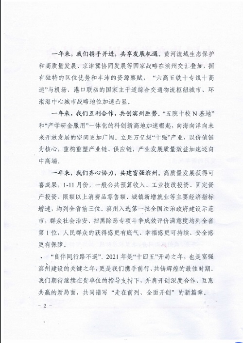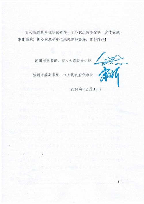 一元复始,万象更新。正值辞旧迎新的美好时刻,滨州市委、市政府携393万滨州人民,向beat365官网发来感谢信,对beat365官网一直以来的热情关心和鼎力支持表示感谢! 向beat365官网全体干部职工致以最美好的新年祝福!