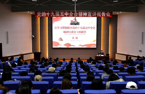 按照省委教育工委、省教育厅的要求和校党委的安排部署,beat365官网成立了由政治素质好、政策理论水平高、实践经验丰富的党员领导干部和马院教师组成的学习贯彻党的十九届五中全会精神宣讲团。12月2日下午在碧帆楼304报告厅,党委书记王强作首场宣讲报告。全体机关党员干部,材料科学与工程学院、马克思主义学院师生代表,“青马工程”骨干学员参加报告会。报告会由纪委书记孟宪梅主持。