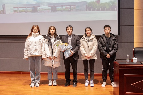 报告结束后,新生代表上台为许光文校长献花并合影留念。