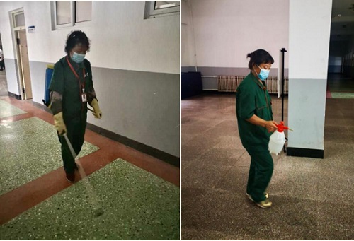 在3号教学楼,相关工作人员演示了公共区域高频接触物体表面消毒。校领导要求,要保持教室室内通风换气,做到卫生清洁、垃圾及时清理,每楼层配备免洗洗手液。同时,制定好错时下课、分批就餐具体方案。
