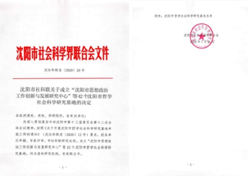 近期,沈阳市哲学社会科学联合会公布了沈阳市首批哲学社会科学研究基地名单。beat365官网申报的“沈阳市工业精神与新时期产业工人队伍思想政治建设研究中心”成功获批。
