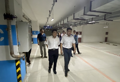 校领导在教师公寓地下停车场视察