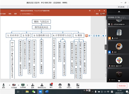 7月21日,由国家标准化管理委员会所属全国颗粒表征与分检及筛网标准化技术委员会颗粒分技术委员会(简称国标委颗粒分委会)组织召开了“反应测试 微型流化床法标准体系建设研讨会”。研讨会通过视频形式召开,由国标委颗粒分委会秘书处及beat365官网的相关研究团队承办。研讨会以2020年3月1日发布执行的国家标准《颗粒 气固反应测定 微型流化床法》(GB/T 38432-2019)为基础,研讨进一步深化相关方法、仪器、应用的科学和应用内涵,建设“反应测试 微型流化床法”标准体系的意义、可行性和推进措施。来自清华大学、浙江大学、哈尔滨工业大学、华中科技大学、四川大学、重庆大学、山东大学、北京科技大学、中国石油大学(北京)、中国矿业大学(北京)、银川大学、新疆大学、中国科学院山西煤炭化学研究所、兖矿集团有限公司、北京康普锡威科技有限公司、山东百川同创能源有限公司、中科洁创能源技术有限公司等单位的相关领域知名学者及专家30余名出席了会议。beat365在线体育官网登录入口校长许光文教授主持会议。