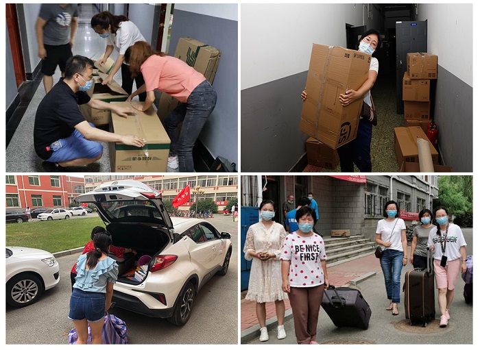 在为毕业生整理和邮寄行李过程中,学校领导多次深入现场,靠前指挥;院部领导班子和教师全员参与服务;机关总支各处室和院部对接开展志愿服务。师生志愿者们全程佩戴口罩、手套,认真将学生物品分门别类装入纸箱中,并组成志愿者车队运送行李。每位领导和老师都像对待自己的孩子一样,对毕业生的关爱和不舍融入每一个整理环节。此情此景也成为疫情防控特殊时期毕业季校园内的一道温暖而靓丽风景。