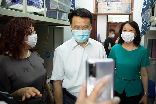 许光文校长和金志浩副校长一行前往生活城入校通道、入校手续办理点、学生宿舍等场所,详细了解返校学生的报到情况,并慰问现场工作人员。在位于生活城门口的入校通道处,许光文校长与返校毕业生进行了亲切交流,详细询问了网课学习、毕业就业等情况。他指出,今年的毕业季情况特殊,全体毕业生共同经历了严峻的疫情考验。学校始终关心和关注着每一位学生的学习和生活情况。他表示,学校一定会确保毕业生们返校期间的安全,做好整理邮寄行李和顺利毕业的各项服务,力求为大家在化大的学习和生活画上圆满句号。他再次邀请毕业生们在校庆七十周年之际能够重返学校,与母校一道重温化大发展历程,见证化大辉煌成就。