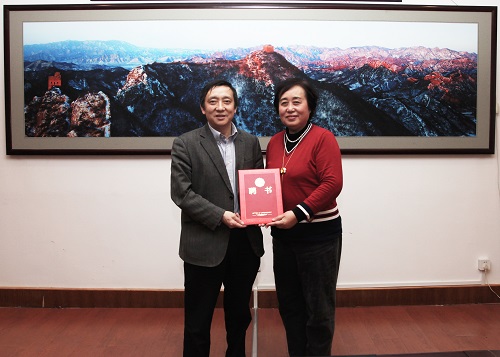 报告会前,校长许光文会见了孙江燕董事长,并为她颁发了《创新创业导师聘书》。