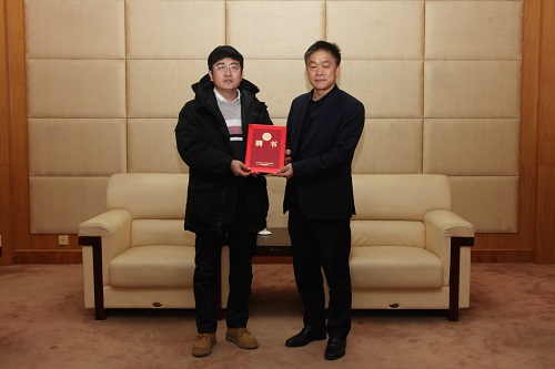 报告会前,副校长金志浩在校部第二会议室会见了苏凯总经理,并为他颁发了《创新创业导师聘书》。