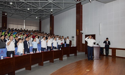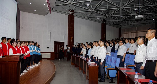 在党委委员、宣传部部长肖于波的领誓下,全体参会师生庄重宣誓:“总有一种品格,驱散阴暗,向善向上;总有一种精神,砥砺前行,宛若阳光;总有一种担当,守护和平,捍卫荣誉。作为新时代雷锋精神的传人,努力向雷锋同志学习。把崇高理想信念和道德品质追求转化为具体行动,在平凡的岗位上作出自己应有的贡献!”