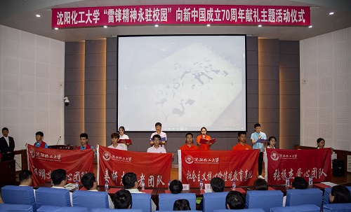 来自校张振杰爱心团队、郭明义爱心团队、姜妍志愿者团队和社会主义核心价值观基地的四名学生代表表演了诗朗诵《雷锋之歌》,抒发了当代大学生对雷锋的无限热爱和崇敬以及对雷锋精神的赞美和传承。