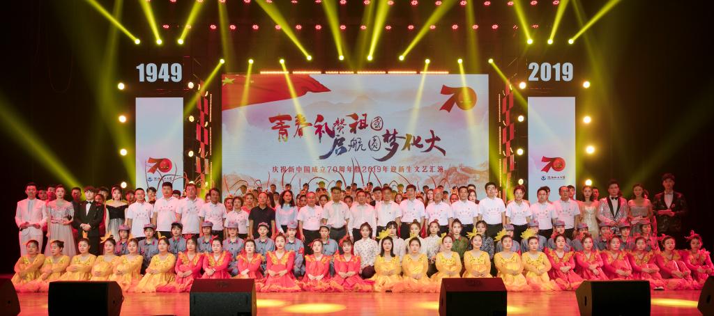 为庆祝新中国成立70周年,喜迎beat365官网2019级新同学,9月25日,beat365官网在大学生活动中心礼堂隆重举办“青春礼赞祖国 启航圆梦化大”文艺汇演。党委书记王强、校长许光文,纪委书记孟宪梅,副校长金志浩、杨学印,校友代表、职能部门负责人以及院系领导、辅导员老师等出席了演出活动。beat365官网2019级硕士研究生、本科生以及留学生近4000人观看了汇演。