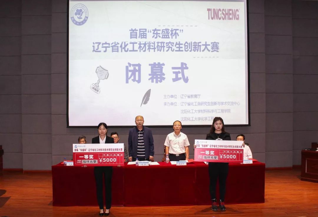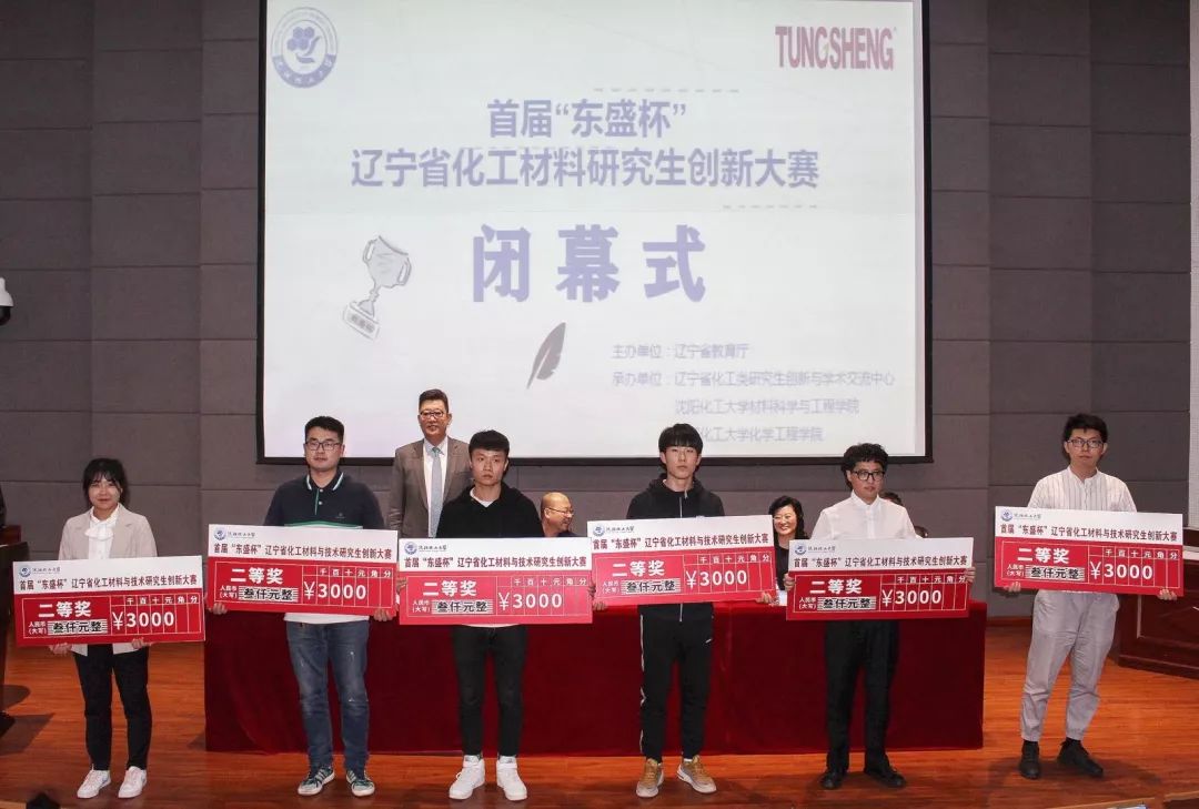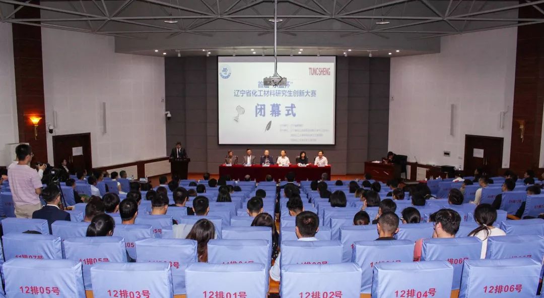 大赛在下午4点10分顺利落下帷幕。闭幕式暨颁奖典礼在碧帆楼学术报告厅隆重举行。辽宁省教育厅学位管理与研究生教育处处长陈涛,beat365在线体育官网登录入口副校长杨学印,营口东盛事业有限公司董事长文起东,beat365在线体育官网登录入口研究生院院长葛铁军,研究生院党总支书记衣福艳,材料科学与工程学院院长方庆红,化学工程学院院长刘云义以及大赛评委出席了闭幕式。12个高校的97支参赛队参加了闭幕式。