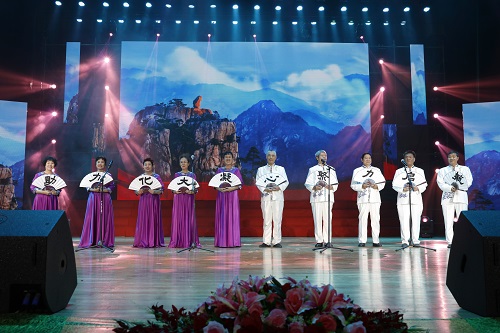 演出结束后,校领导上台慰问演职人员并合影留念。