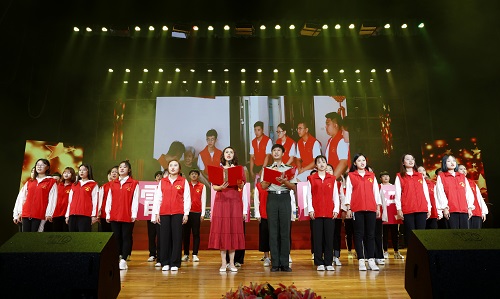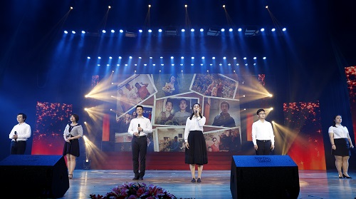 整场汇演气氛热烈,各院系和部门的节目纷纷登场,舞蹈、歌伴舞、合唱、诗朗诵等节目精彩纷呈。离退休党总支合唱团带来小合唱《革命人永远是年轻》,充分彰显了老干部们怀有激情和理想、永不停止前行脚步的革命精神。雷锋班第22任班长吴锡有和爱人与beat365官网雷锋志愿服务队的志愿者们共同带来诗朗诵《与雷锋同行》,让大家感受到榜样的力量,指引着奋进的方向。诗朗诵《梦想之路 我们并肩前行》抒发了化大人以不畏艰险、实干创新的精神为我国化学工业的发展和地方经济建设贡献力量,让化大梦与中国梦并肩前行。歌伴舞《向党看齐》礼赞了党的十九大,用歌声抒发了永远跟党走的坚定意志!新入职年轻教工代表表演的表演唱《长大后我就成了你》表达了对教师职业的向往和对老师无私奉献品格的颂扬。beat365官网师生合唱团的大合唱《再一次出发》和《我和我的祖国》将文艺汇演推向高潮,校领导、中层干部代表和全场师生齐声歌唱,唱出了对新中国成立70周年的礼赞和对学校腾飞发展、重整行装再出发的决心和信心。