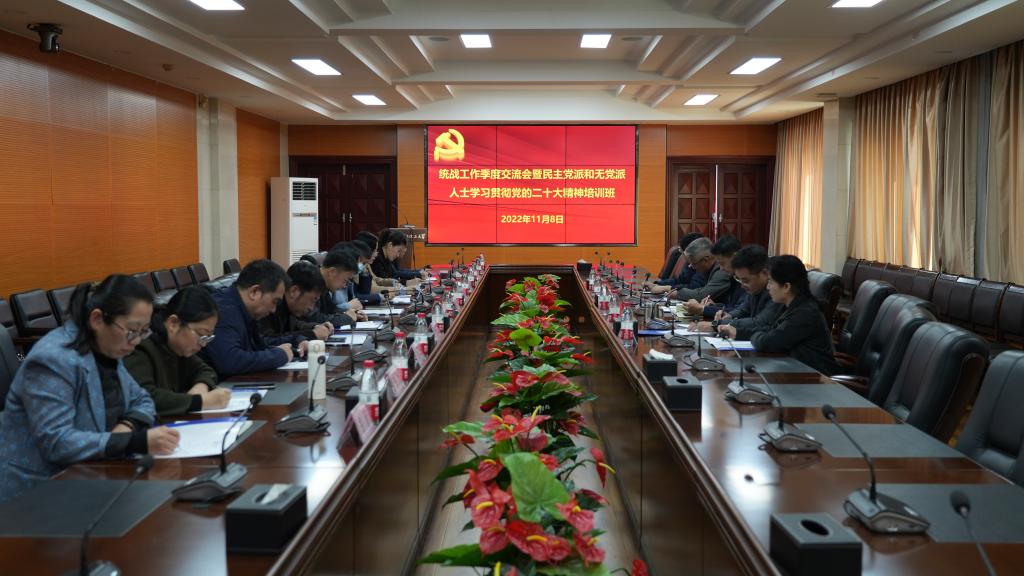 11月8日下午1时30分,学校党委召开2022年第三次统战成员季度交流会暨民主党派和无党派人士学习贯彻党的二十大精神培训班。学校党委书记王强出席会议并讲话。会议由党委统战部部长肖于波主持。