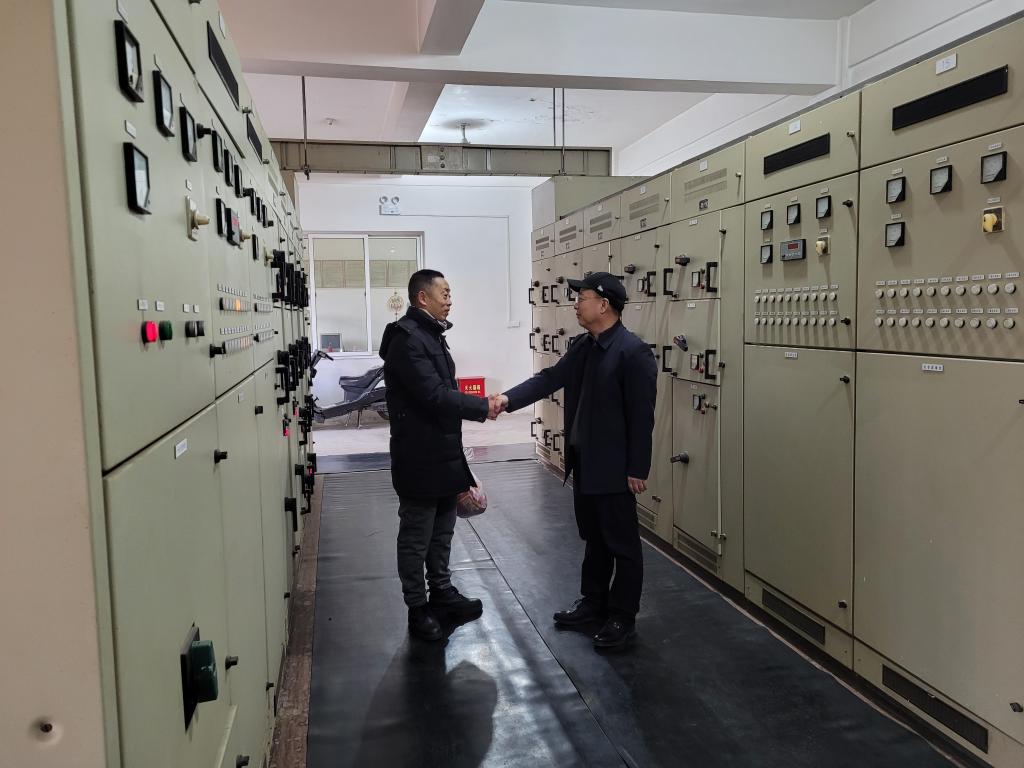 副校长杨学印一行先后到学校北门值班室、锅炉房、变电所、保卫处监控中心和总值班室,看望慰问正在值班的教职工。每到一处,他都与坚守岗位的教职工、物业公司工作人员亲切握手,询问节日期间校园安保、供暖和用电等情况,并送上慰问品。他代表学校向春节期间仍然坚守岗位、服务保障第一线的各位教职工送上新春祝福,感谢他们为了学校工作安全有序的运行而不能与家人团聚,感谢他们为校园安全稳定所作出的贡献。同时,叮嘱各位值班人员要把安全放在第一位,强化责任意识,确保圆满完成各项工作任务。