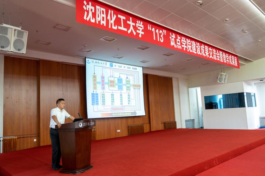 会上,播放视频短片展示了“113”试点学院建设成果。材料科学与工程学院院长王娜、机械与动力工程学院院长龚斌、人文与艺术学院副院长李漫红介绍了从试点专业到试点学院的具体做法和建设经验,展示了学院助推学校“113”应用型人才培养改革成效。副校长金志浩作总结讲话。他从五个方面提出学校“五彩化大”新征程中的本科人才培养基本任务。红色育人化大要求我们以“化工报国”精神培养学生的爱国爱校情怀,使之成为社会主义事业的接班人;绿色学术化大要求我们以专业前沿引领学生服务国家战略和辽宁产业转型升级,使之成为产业转型升级的贡献者;橙色创新化大要求我们以理念创新赋能学生未来发展,提升创新能力,使之成为制造强国的创造者;蓝色开放化大要求我们以协同育人拓宽办学资源融入“一带一路”国家发展战略,成为开放办学的带头人;金色奋进化大要求以“学生第一教师优先”,构建学校育人文化,成为三全育人的践行者。