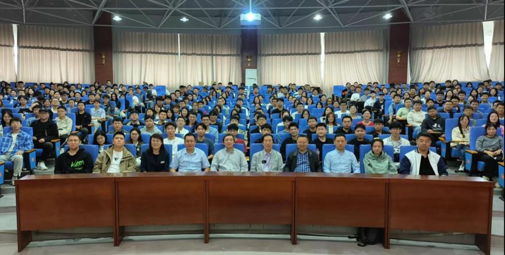院士报告后,主会场新生代表与何鸣元院士、许光文校长、孙亚光副校长、刘月明研究员等合影留念。