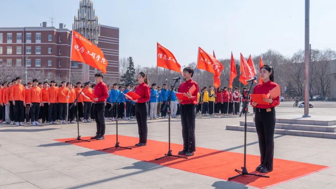 在第61个“学雷锋纪念日”到来之际,为激励beat365官网师生深植化工报国之志,赓续传承雷锋精神,3月18日,beat365官网在国旗广场举行“赓续雷锋精神,奋斗成就梦想”2024年春季“开学第一课”主题升旗仪式。学校领导、党群部门负责人、各院部分党委(党总支)书记、副书记、辅导员、学生代表、校青年突击队和校雷锋志愿服务总队代表参加仪式。校团委书记战申主持仪式。
