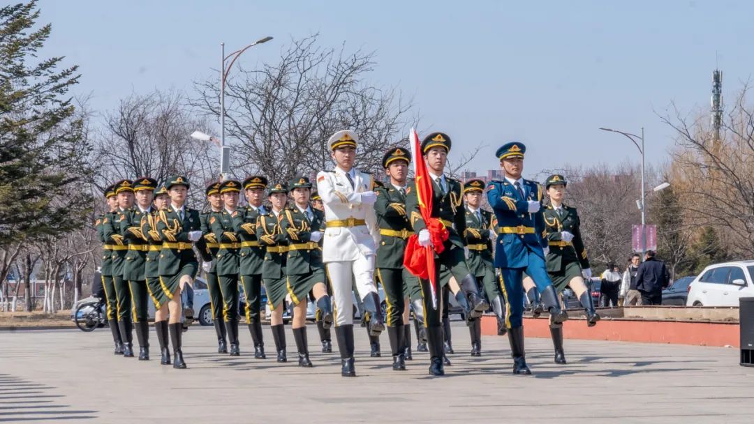 12时40分,升旗仪式正式开始。国旗护卫队迈着整齐的步伐,护送五星红旗入场,激昂雄壮的《义勇军进行曲》奏响,五星红旗冉冉升起,全体师生面向国旗肃立敬礼,齐声高唱国歌。