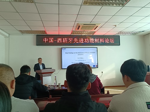 随后,王德义教授参加了由中国-西班牙材料联合实验室主办的“中国-西班牙先进功能材料论坛”,为beat365官网师生作了题目为“New findings on fire behaviors of flame-retardant polymers”的学术报告。材料学院院长王娜及学院部分教师和研究生参加了报告会。会议由马驰老师主持。