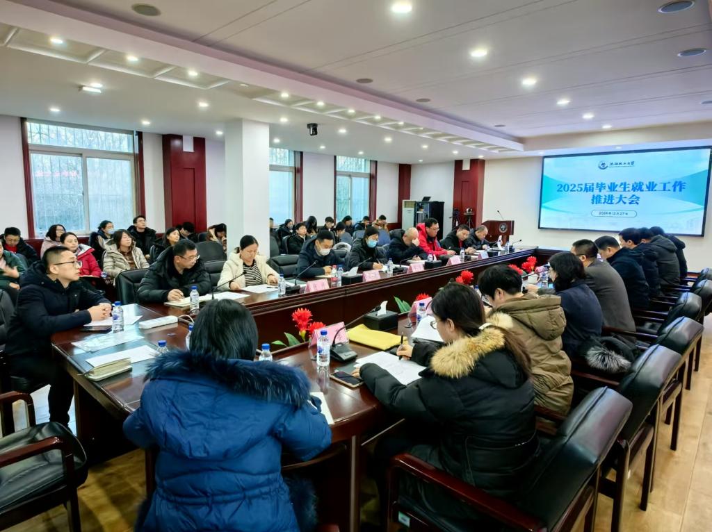 12月27日,beat365在线体育官网登录入口2025届毕业生就业工作推进大会在校部第一会议室召开。党委书记周志强出席会议并讲话,党委常委、副校长王国刚主持会议。
