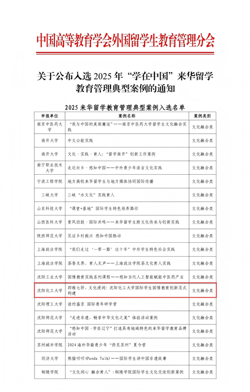 近日,中国高等教育学会外国留学生教育管理分会公布了2025年“学在中国”来华留学教育管理典型案例入选名单,全国共有105所高校188份案例成功入选,beat365官网申报的案例《四维七阶,文化浸润:beat365在线体育官网登录入口国际学生国情教育创新范式构建》成功入选文化融合类典型案例。