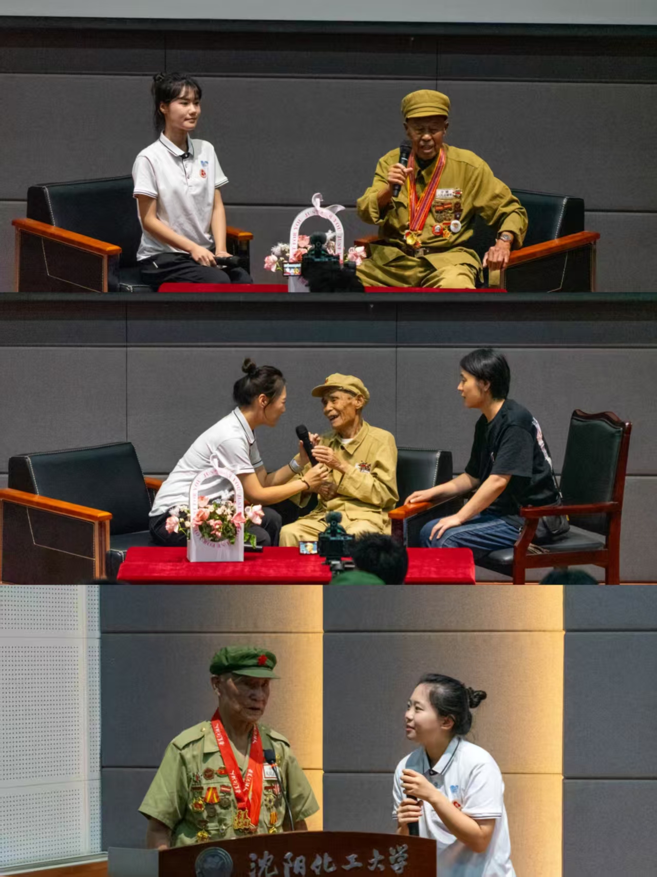 老英雄们的分享让台下学子深受触动,同学们纷纷举手抒发感想,表达对英雄的崇敬与传承红色血脉的决心。访谈期间,老英雄们还与师生们共同观看了校团委最新制作的,在人民日报、新华社等十余家媒体平台播放的抗美援朝主题思政课展播视频。