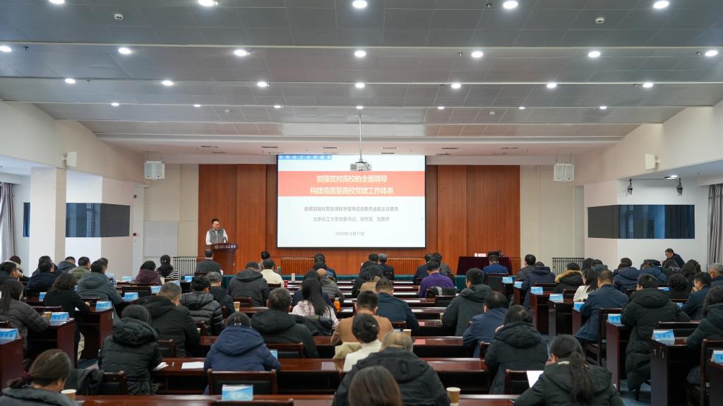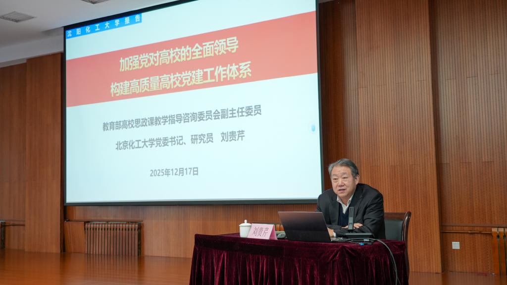12月17日,北京化工大学党委书记、教育部高等学校思政课教学指导咨询委员会副主任委员刘贵芹应邀来校作专题报告。党委副书记、副校长秦高梧主持报告会。在校校领导、全体中层干部、思政课教师代表、党务工作者代表等聆听报告会。