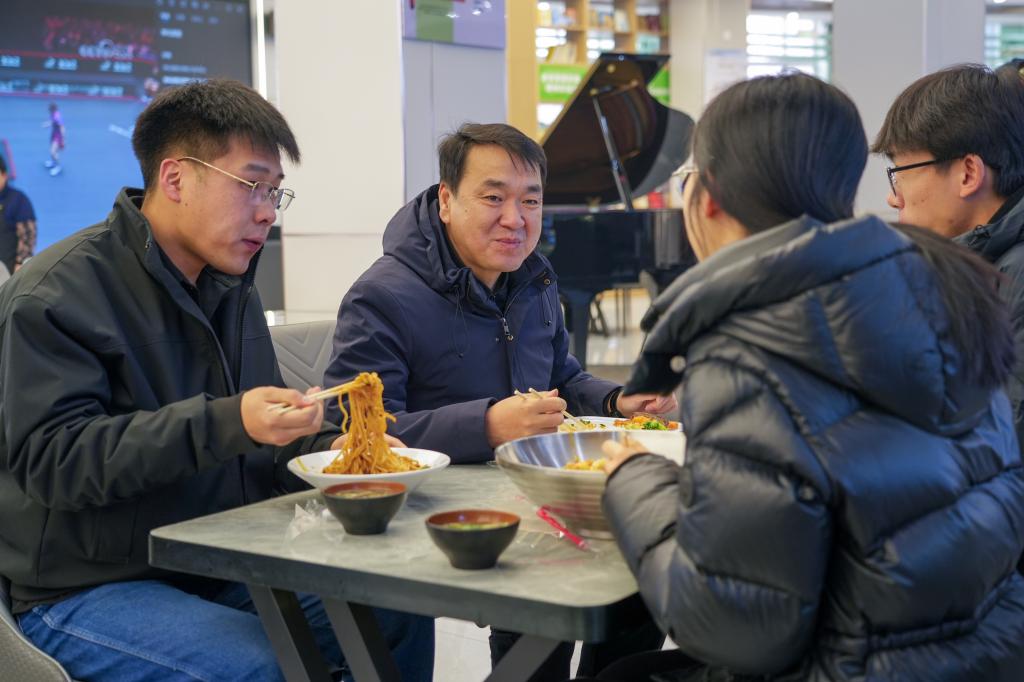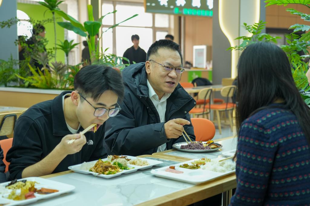 中午,校领导们来到寒假升级改造的食堂,与同学们共进午餐,面对面谈心交流。他们询问同学们对改造后的新食堂就餐环境、饭菜口味、菜品质量的满意程度,耐心倾听学生在学习生活、成长发展等方面的所思所盼,详细了解同学们的学业计划、职业规划与理想追求,并结合自身经历给出针对性指导建议。他们勉励化大学子传承化工报国光荣传统,勇担时代使命,努力成长为堪当大任的时代新人,为国家建设和民族复兴贡献化大青年的智慧和力量。
