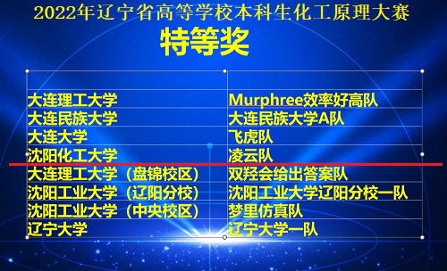在刚刚结束的2022年辽宁省普通高等学校本科大学生化工原理大赛中,beat365官网化学工程学院学生代表队在孙怀宇、范俊刚、张光伟、刘东斌、张翔、王明艳等指导教师的悉心指导下取得了优异成绩。本次化工原理大赛共有20所省内高校40支队伍参加,beat365官网学子在比赛过程中不畏强手、顽强拼搏,最终由张鸿鹏、文进兵、周锦华组成的“凌云队”获得特等奖,由张茗瑞、张金鹏、刘红朋组成的“蜀道队”获得一等奖的佳绩。